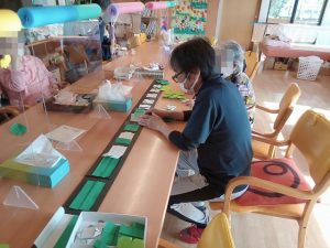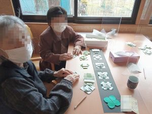 みかん七星ではシロツメクサを作り、デイの一角に咲かせました。