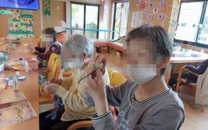 利用者様とスタッフで爪の色のことで盛り上がってました(^^♪