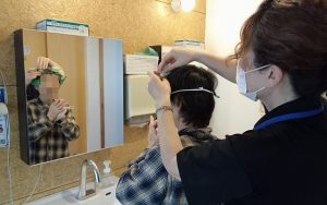 鏡で一人ひとりに合ったサイズに調整したら、完成です。