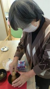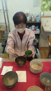 道具もご自分で持参されて、皆様にお抹茶をたてていただきました。