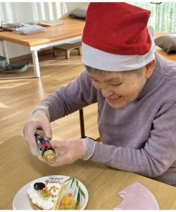 投稿日: 2025年12月29日2025年12月29日 投稿者: rihasta-mikanクリスマス会② 芽杏では、今年のクリスマスのを、一人一人にデコレーションをしていただきました これもまた、買ってきたケーキとは違ってめちゃくちゃ良かったです みんなで楽しいクリスマスを過ごすことが出来ました 芽杏