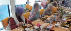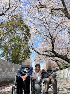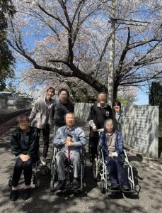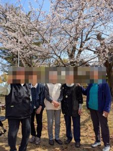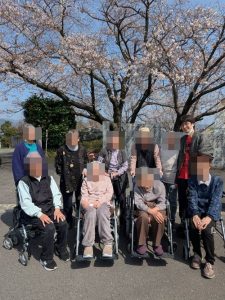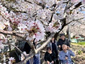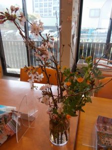 お花見の日はいつもと違う席の配置にして、本物の桜も!!